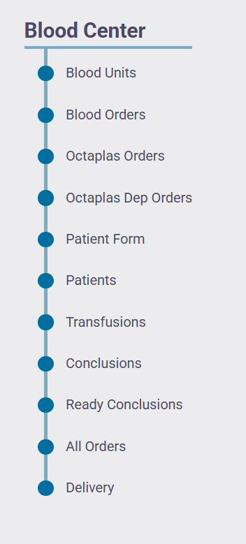 Patient orders may be entered manually or electronically. The system’s analysis tools assist clinicians in selecting the appropriate blood product by validating blood groups, checking antibody profiles, reviewing result histories, and applying built‑in safety mechanisms for test‑result entry.